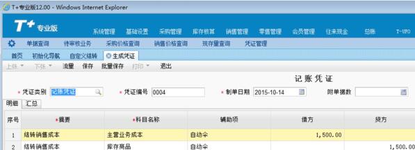 情況二:科目掛上存貨輔助核算(庫存商品、主營業(yè)務(wù)收入、主營業(yè)務(wù)成本都掛上)