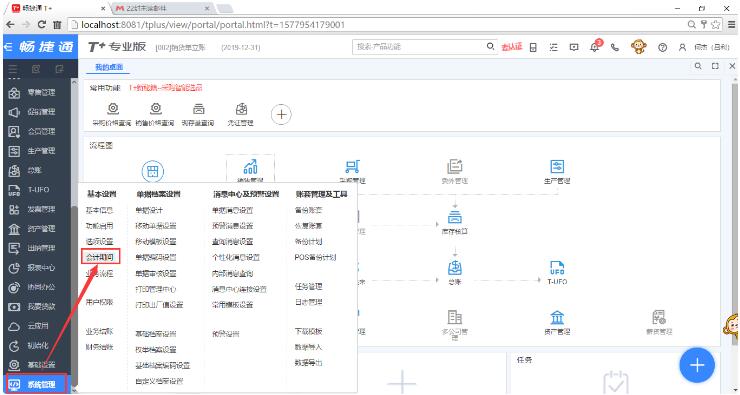 2、點(diǎn)“系統(tǒng)管理”-“基本設(shè)置”-“會計期間”;