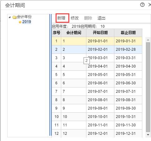 3、在會計期間的界面上,點(diǎn)“新增”按鈕;