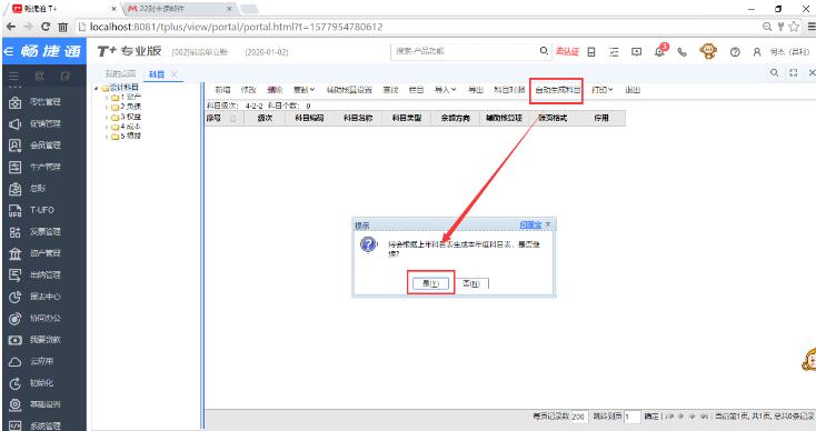 6、如果客戶那有財務(wù)賬,需要做2020年的憑證,則還需要點(diǎn)“基礎(chǔ)設(shè)置”-“科目”-“自動生成科目”,則會把上年度的科目帶到本年度;