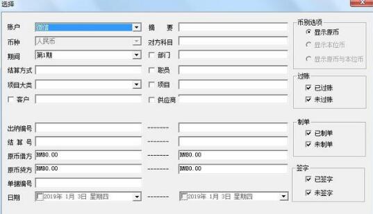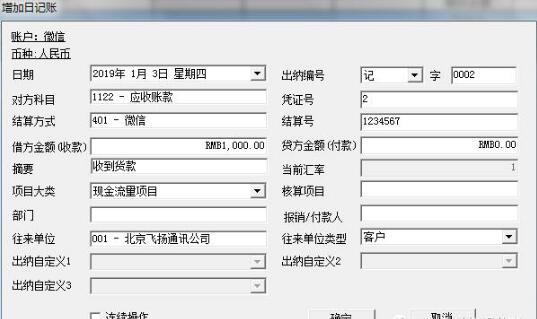 第一步,增加微信或者支付寶日記賬(本文以微信為例)。點(diǎn)擊銀行日記賬,選擇微信賬戶和期間,點(diǎn)擊確定,如下圖。